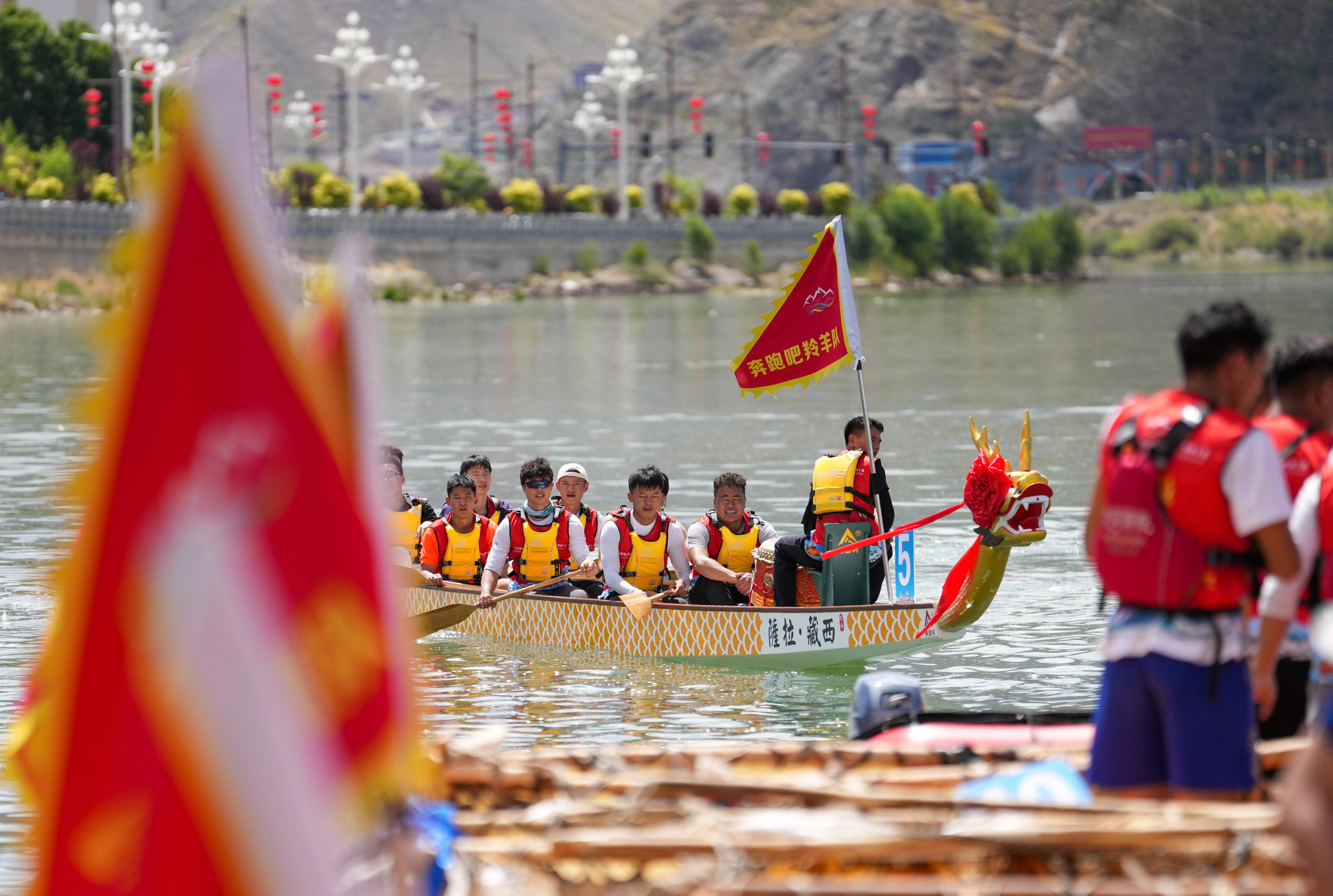 旧年他进入了西藏第一届龙舟赛