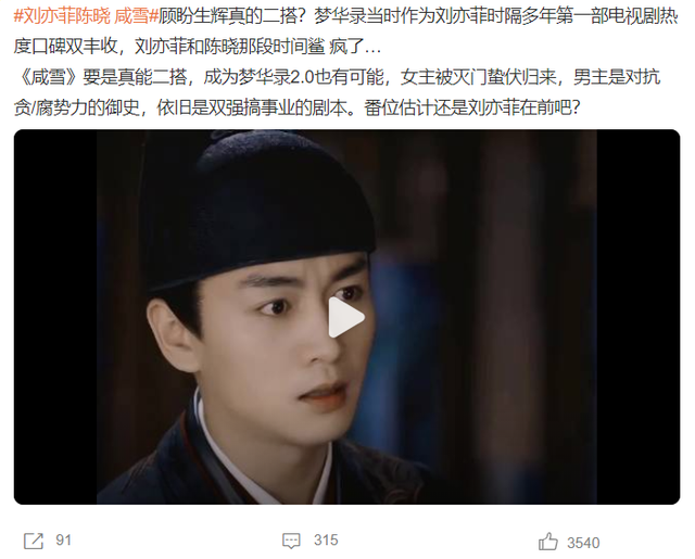 《咸雪》刚传出拍摄的音信,网上就运转传主演气势,一个气势是刘亦菲搭档刘学义,另一个气势是刘亦菲搭档陈晓,这部剧的编剧是陈宇,他曾担任《满江红》《坚如磐石》《狙击手》等作品的编剧,实力系数在线,但这部剧迟迟未官宣主演气势。