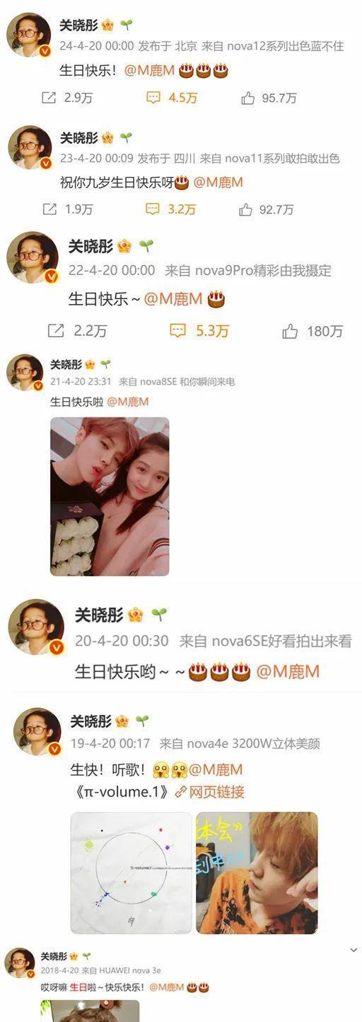 二东说念主官宣于今七年多的工夫里,关晓彤仍是集中七年发博为鹿晗庆生,曾屡次卡零点发文。