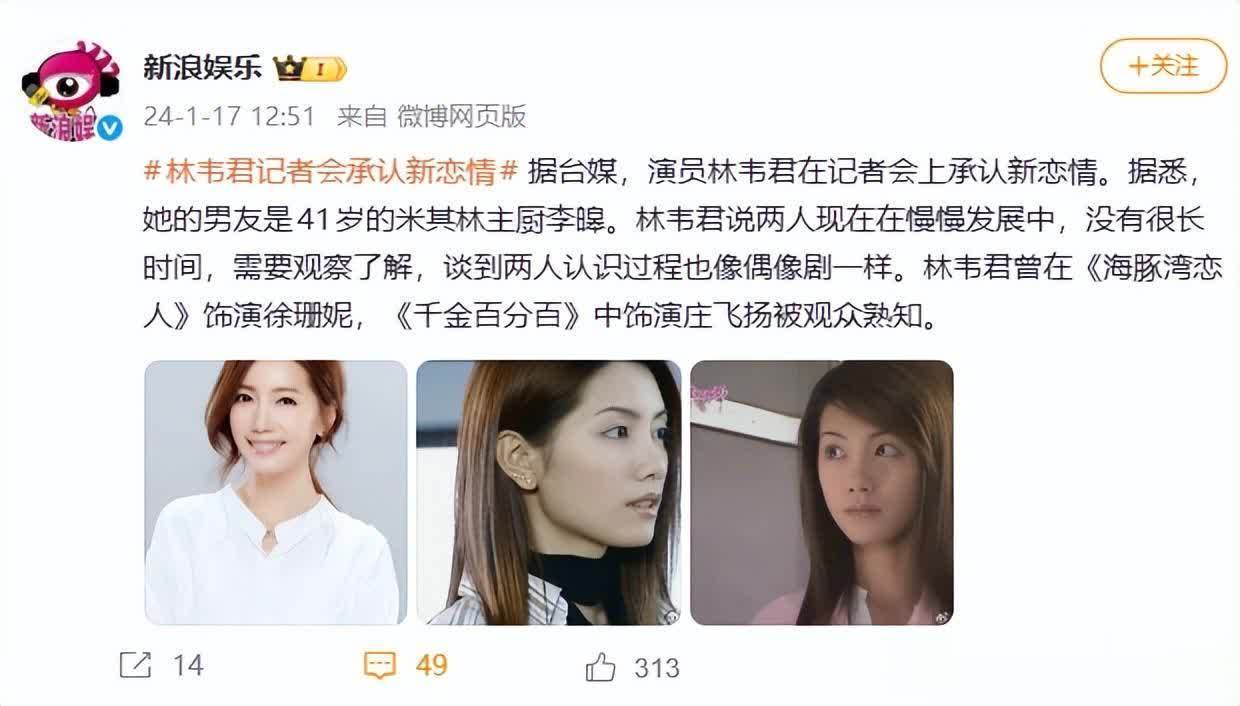 其实两东说念主果断好多年了,他是她一又友开的餐厅里的厨师,当年林韦君奇迹低谷,神气最差的时候,时常去那家餐厅吃饭。