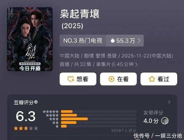 三、口碑分化与市集证据 国内豆瓣开分6.3(近6万东说念主打分),月旦集会于"打戏删减导致节律仓促"(余蓉高光戏隐没)、"悬疑线弱化";