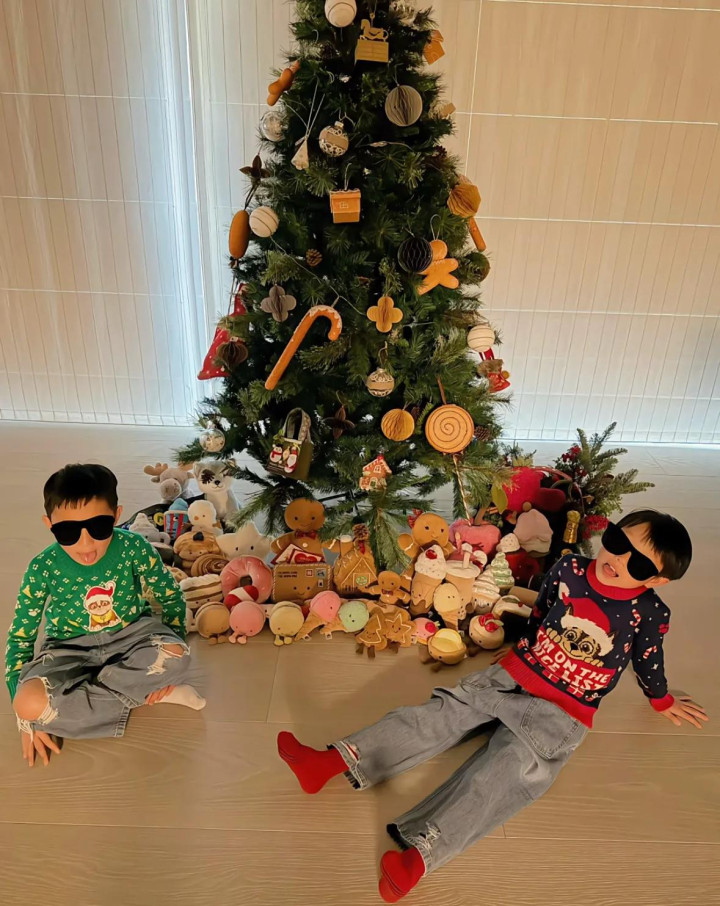 嗅觉这个圣诞树放在家里之后就很有节日的氛围感,是以他们就拍了好多张相片纪录。