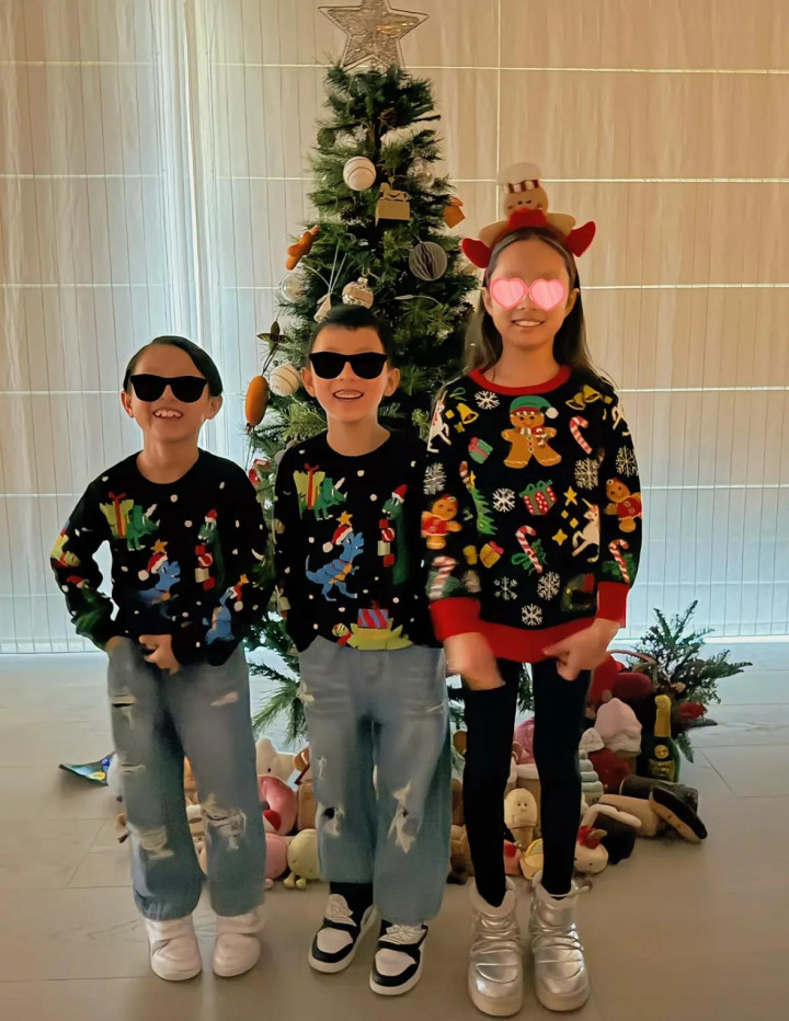 关颖的三个孩子衣服同款的真挚毛衣,站在圣诞树跟前拍照,对着镜头知道繁华的笑脸,为了保护孩子的隐讳,她还给孩子戴了眼镜贴纸,不外看长相孩子王人是更像爸爸多一些。
