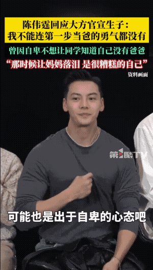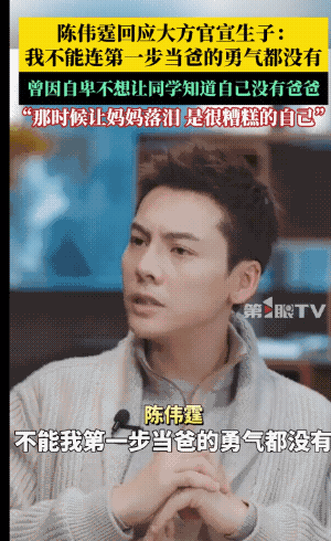 陈伟霆给与采访复兴大方官宣生子的原因,称四十岁有了犬子,让他从头扫视我方了,弗成连当爸爸的勇气皆莫得。同期也出于个东谈主阅历,他爸爸早早就亏空了,练舞蹈的技巧被东谈主骂过“有妈生没爸教”,让他产生了很严重的自卑心态,导致最终伤害到了爱他的姆妈,阿谁景况的我方太厄运。