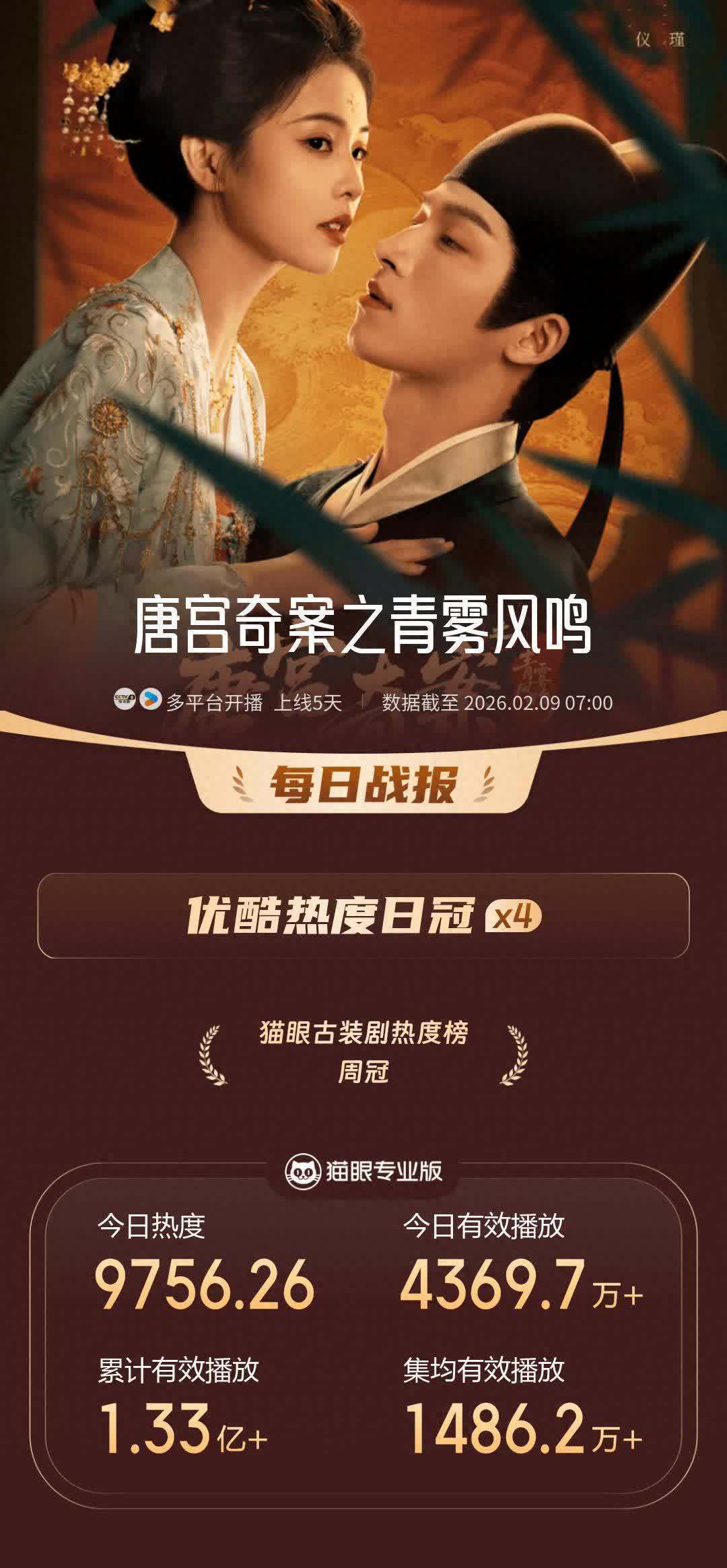 最近白鹿和王星越主演的古装探案剧《唐宫奇案之青雾风鸣》果真杀疯了!上线以来邻接霸榜优闷热过活冠。