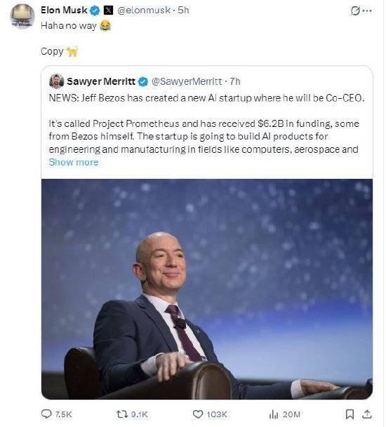 据知情东说念主士称,亚马逊首创东说念主杰夫・贝索斯创办了一家新的东说念主工智能初创公司,名为“Project Prometheus”(普罗米修斯霸术),贝索斯担任该公司的联席CEO。