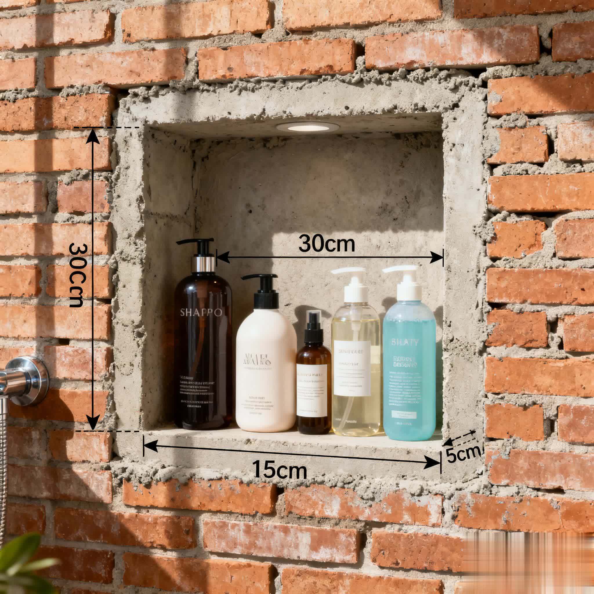 壁龛代替置物架:淋浴区砌墙时作念壁龛,放洗澡用品整皆省空间,幸免磕碰。