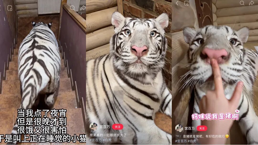 此外,还有“萌宠”博主@宫百万。“宫百万”其实是一只真材实料的孟加拉白虎,由博主在办理私东说念主动物园牌照后,从乌克兰动物园中购入。由于特等工夫动物园枯竭财政拨款和旅客收入,许多动物幼崽无东说念主护理,博主还同步养了花豹、好意思洲豹和薮猫。